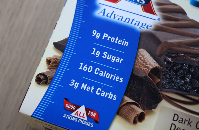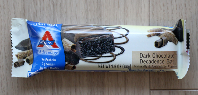 Atkins(アトキンス)のダークチョコレート・デカダンスバー 超甘いけど低糖質なチョコクッキーバーアトキンス・・というと低糖質をコンセプトとした「アトキンスダイエット」が有名ですが、そのAtkinsシリーズとして低糖質を謳ったバーが販売されています。