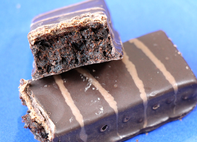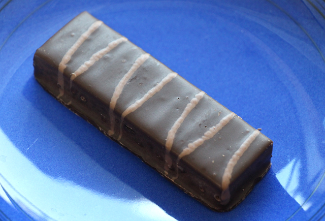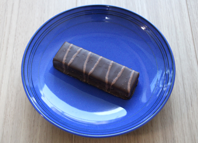 写真はダークチョコレート・デカダンスバー(Dark Chocolate Decadence Bar)という名称のチョコバーで、特に糖質制限をされている方に人気の高い商品です。 濃厚な甘さのチョコとサクサクとした触感が特徴のバーで、結構食べごたえがあります。 チョコ・・といっても、こういう商品にありがちな偽物っぽいチョコレートの味ですが、ちょっと甘いものを食べたい時などには味もサイズ的にもお手軽な製品です。