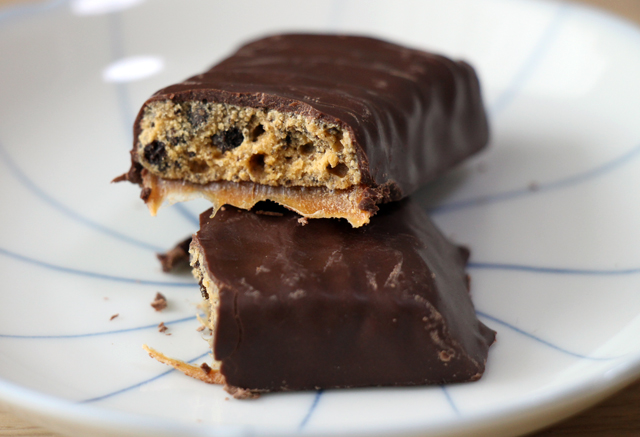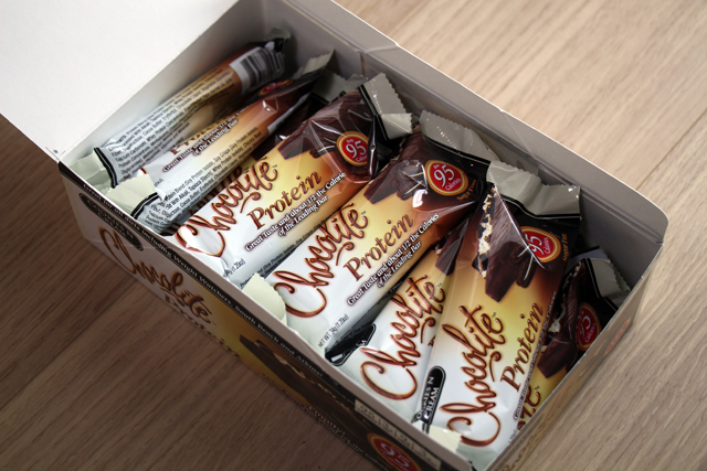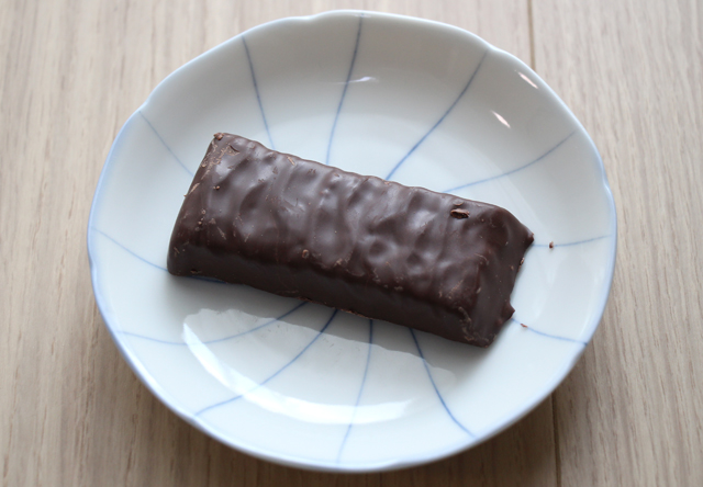 1箱に34gのバーが16本入っています。 上にも書いた通り、カロリーは1本あたり95Kcalで炭水化物の総量は17g。食物繊維が9g含まれるので、糖質量は糖アルコール4gを含んで8g。糖アルコールを含まなければ4gです。 ただ、パッケージには3gの糖質量と書かれており、若干数字が違うのが謎ですが、海外の食品では結構そういう事があります。私自身は「大は小を兼ねる」という事で、糖質量は数字の大きい方だと考えておけば間違いないのではと考えています。 原材料については以下の通り。 タンパク質ブレンド(分離大豆たん白、大豆クリスプ[分離大豆たん白、アルカリで処理したカカオ、タピオカデンプン]、乳清タンパク分離(Whey Protein Isolate))、チコリ根繊維、オリゴフルクトース、ココアバター、エリスリトール、チョコレートリカー、植物性グリセリン、濃縮乳清タンパク質(WPC)、マルトデキストリン、クリーム[ヘビークリーム(脂肪分の高いクリーム)、カラギーナン、モノおよびジグリセリド]、マルチトールシロップ、天然香料、カゼインナトリウム、大豆レシチン、塩、リン酸二ナトリウム、ビタミンおよびミネラル 主に大豆たんぱくが中心に使われています。甘みはエリスリトールやオリゴフルクトースで、量は少なそうですがマルチトールなども利用されているよう。 甘みは、人工甘味料独特の強い甘さという感じですが、この間掲載したアトキンスの「Dark Chocolate Decadence Bar」よりは甘さ控えめ。こちらの方が自然な甘さで、私はChocoliteの方が好みです。