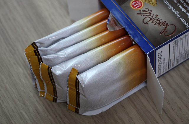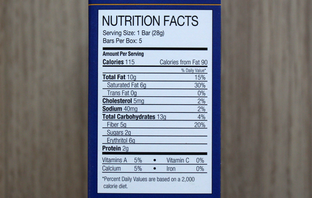 1箱あたり5バー入り。 円安でちょっと前より価格上昇しているかなと思いますが、1バーあたり170円に満たない位と、糖質オフのお菓子としてはお安い印象です。